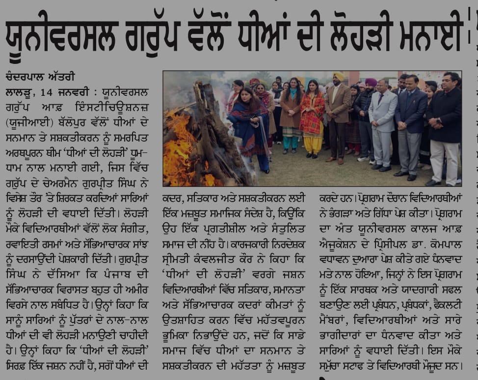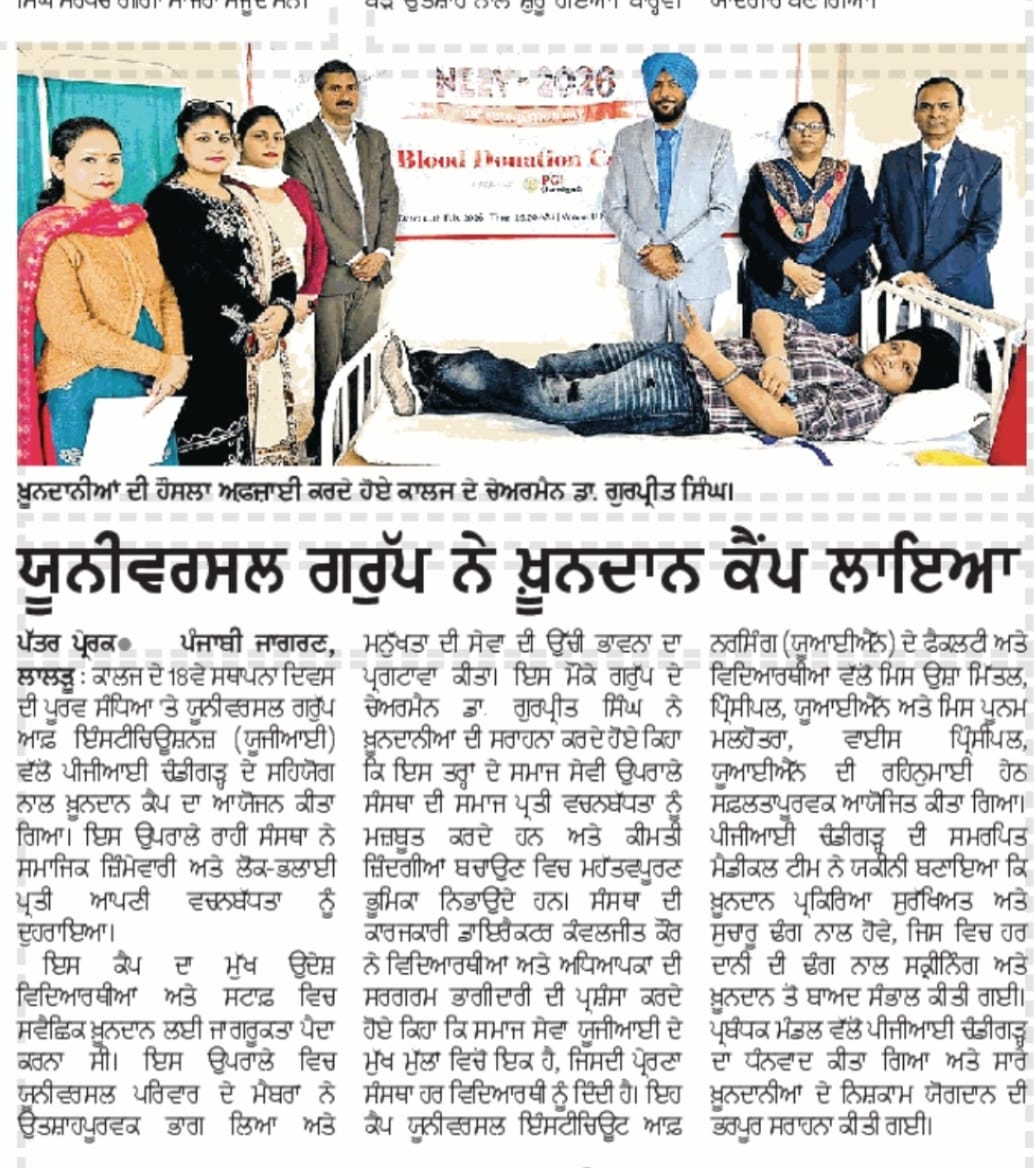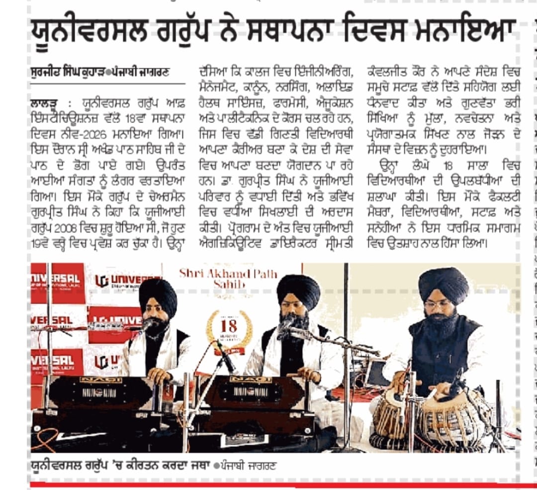 Universal Group of institutions is the most reputed institution offering quality education in Punjab, Chandigarh, North India. It is an ideal platform that is focused on enhancing the quality of education. The institute is the compilation of hard work and smart work from the dedicated team, which is only aiming to enrich the nation and society with their best products, i.e. the students who are the building blocks of the nation. Universal Group of Institutions came into being in the year 2009 and has been leading since then in the list of the best colleges or universities in India. A team of highly qualified staff is working to enlighten the students' careers with the best bunch of knowledge. At UGI, various courses like Engineering, Law, Nursing, Pharmacy, Management, Paramedical, Polytechnic, and Humanities are being offered. Students from all over the country are pouring in here to increase their knowledge and broaden their horizons concerning their respective disciplines. UGI is a perfect launch pad for the students that enabling their professional career to take off.
